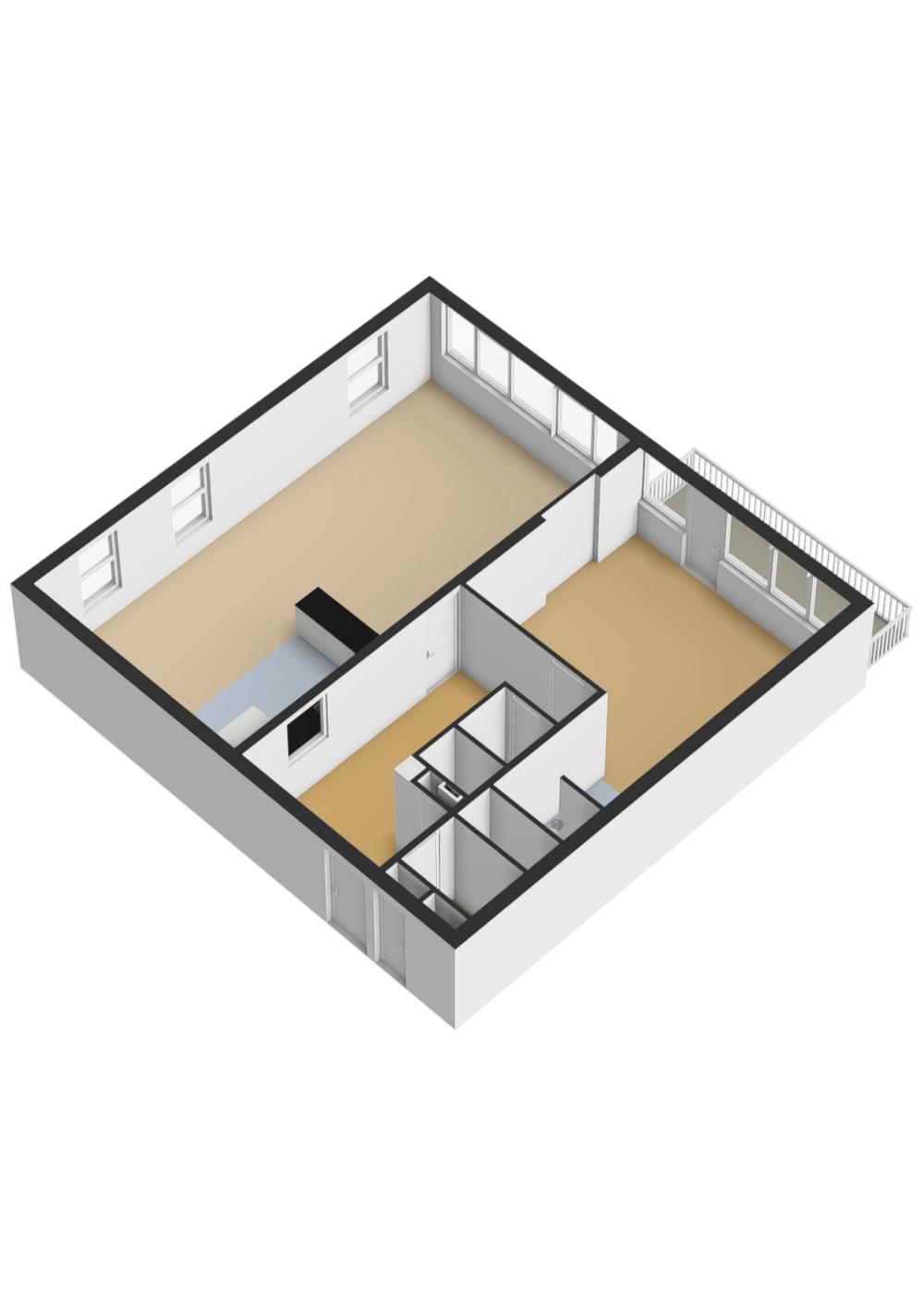 Let op: de laatste plattegrond is een voorbeeld van een mogelijke indeling voor het creëren van een 4 kamer appartement (3 slaapkamers) De keuken dient echter nog in de plattegrond te worden ingetekend.
